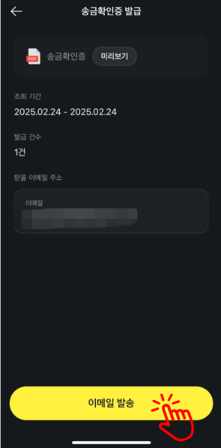 그 후에 나오는 화면에서 이메일 발송 눌러주시면
